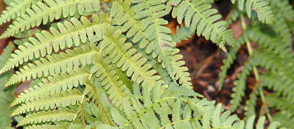 But it was just this year that the full-scale planting and re-planting started. When I paid my visit to the garden, the landscapers were hard at work in the woodland area. The particular bed they were working in was covered with swaths of the evergreen marginal wood fern (Dryopteris marginalis), the closed gentian (Gentiana andrewsii), and downy Solomon’s seal (Polygonatum pubescens).