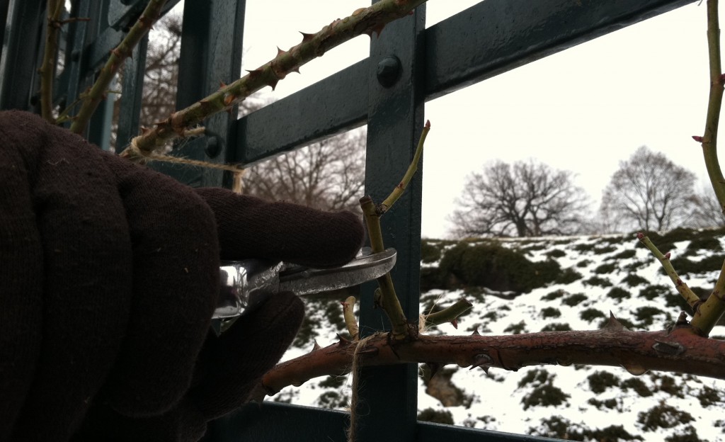 Pruning climbing roses is akin to a good spring cleaning. When things pile up in the home, there is nothing like a quiet winter weekend to dive into the mess and de-clutter. It is precisely what rosarians in the Northeast do with their climbing roses at this time of year.