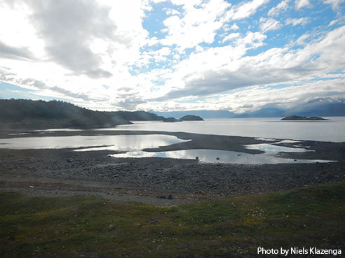 This morning I am not alone in rising early. Today is our only opportunity to go into the field on Isla Lennox. It is so warm and sunny that it is hard to decide on an appropriate outfit, one that is not too heavy and yet still waterproof when sitting on the ground. The plan is to spread out so as to cover as much of this substantial island as possible, all the while avoiding landmines.