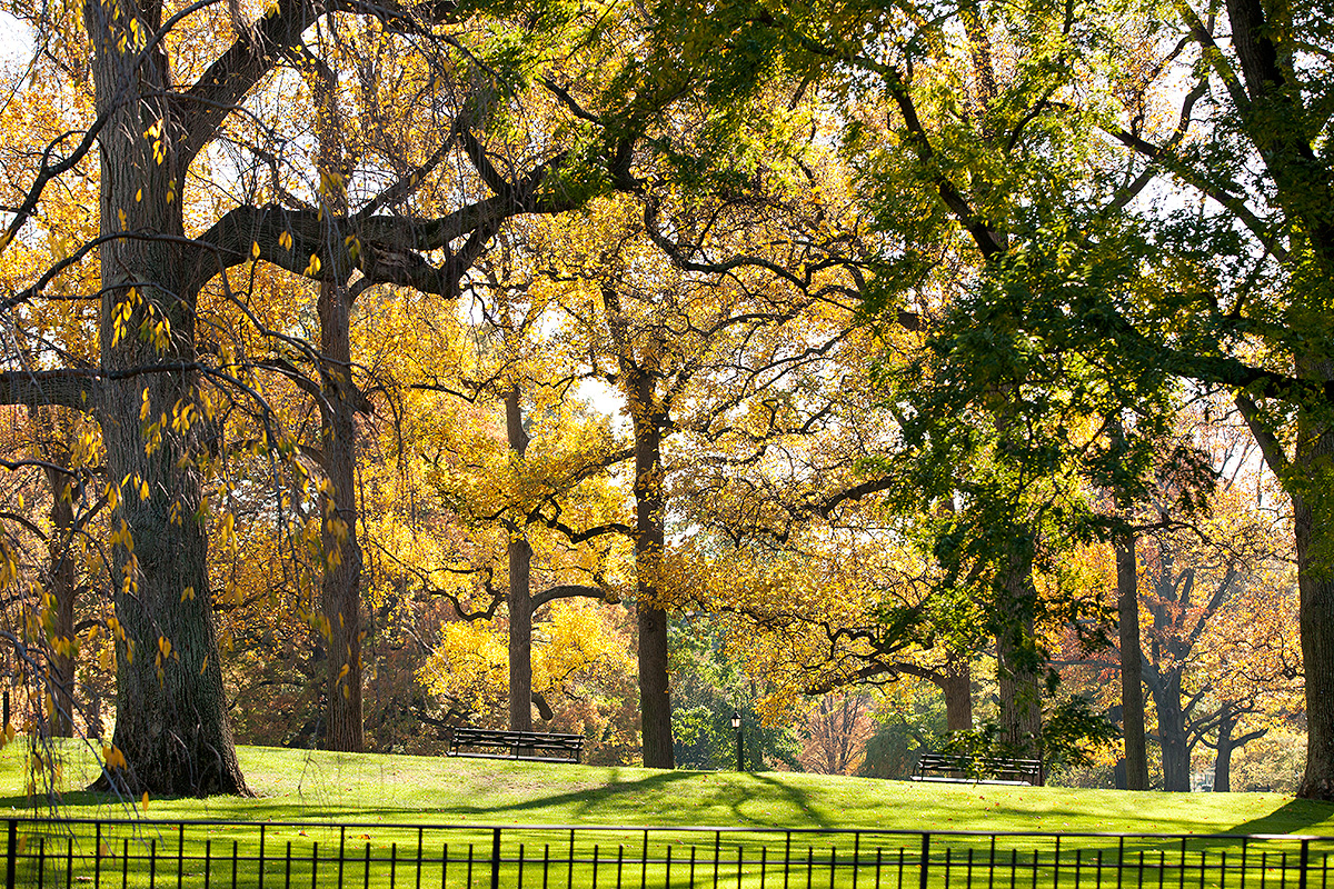 The grass beneath the Tulip Tree Allée positively glows in the morning sun.
