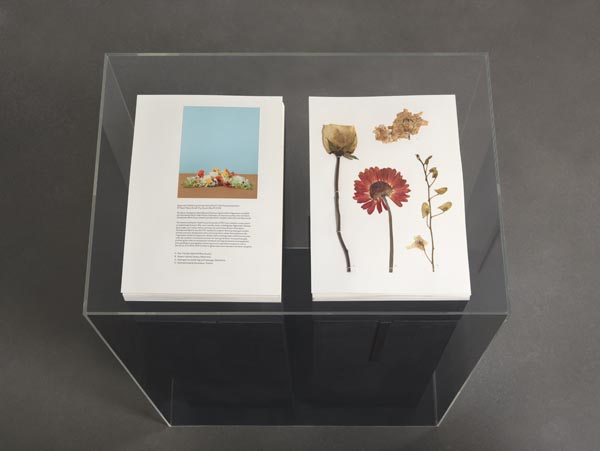 In “Paperwork and the Will of Capital,” Simon recreates and photographs the elaborate centerpieces that sat between powerful men as they signed agreements designed to change the world. Preparing the exhibition, Simon worked with Daniel Atha, NYBG botanist and Conservation Program Manager, and Sheranza Alli, NYBG Senior Museum Preparator and Herbarium Aid, who teach a Plant Collection and Preservation Workshop at the Garden.