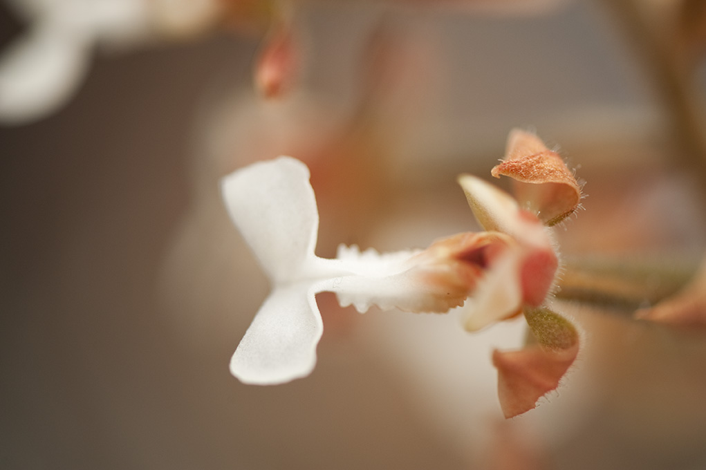 Orchids that dangle in the air–sometimes known colloquially as air plants–are classified as epiphytes. Epi- means “on top” and -phyte means “plant”–essentially growing on top of another plant. The relation the epiphyte has with the host is not parasitic (where it is harming the host), nor is it symbiotic/mutualistic (where both parties benefit), but rather commensalistic (where one benefits and the other is neutral). The term commensalism is derived from the Latin meaning “sharing a table.”