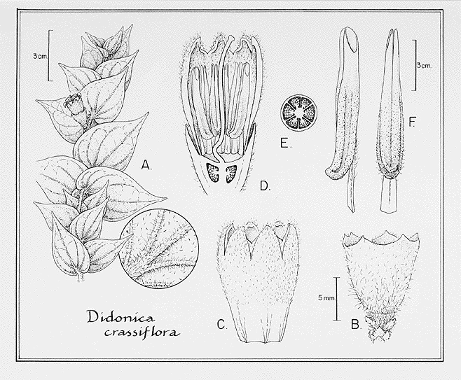 Didonica crassiflora. A: habit with inset of leaf lower