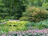 The Mother’s Day crescendo of white, coral, pink, and purple azalea blossoms is one of the Garden’s most striking seasonal spectacles. Set amongst the dramatic rock outcrops, steep slopes and dappled shade of centuries-old native trees, this garden is beautiful throughout the seasons with plants in bloom nearly every day of the year. Alongside the azaleas and rhododendron, you’ll find a diverse assortment of flowering trees and shrubs, woodland perennials, bulbs, ferns and grasses. Collections in this garden include dogwood, mountain laurel, hydrangea, spice-bush, witch-hazel, epimedium, hosta, hellebore, snow-drop, and ferns.