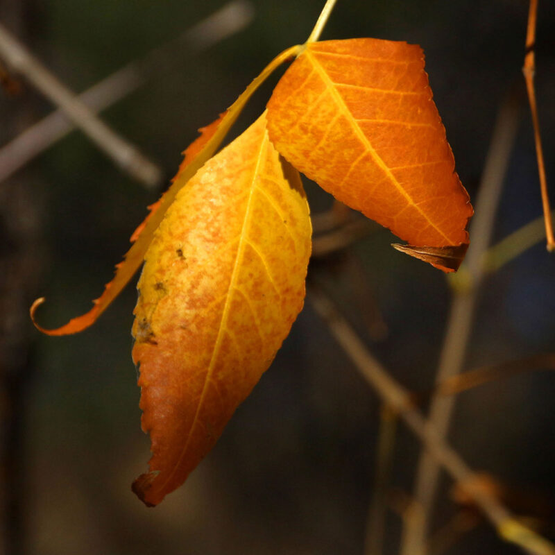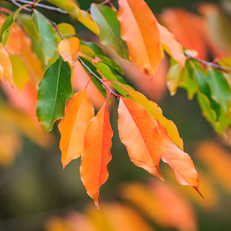 The last trees to transition to fall color include our native oaks, such as red oak (Quercus rubra) and scarlet oak (Quercus coccinea); ginkgo (Ginkgo biloba); and American beech (Fagus grandifolia).