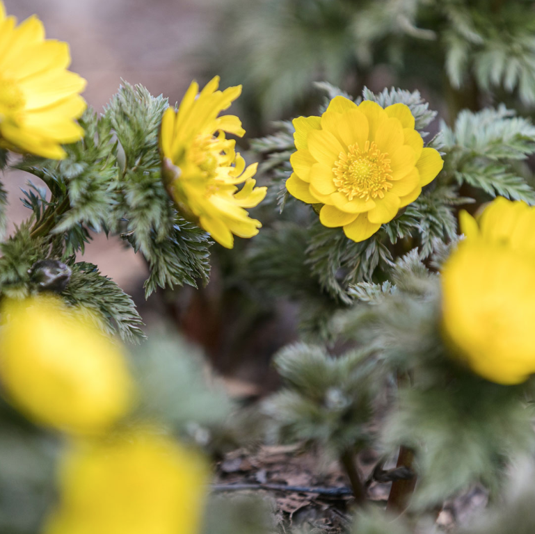 The outdoor collections are beginning to wake. From the winter jasmine and crocuses to the adonis coloring the collections, the bright signs of spring are starting to emerge all around the Garden. Take a look at a few of the harbingers of a new season that we’re seeing today.